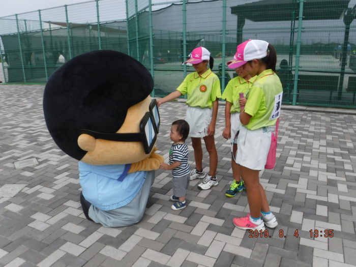 テニス大会の応援に岩沼市のゆるキャラ【岩沼係長】が来てくれました。