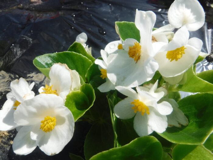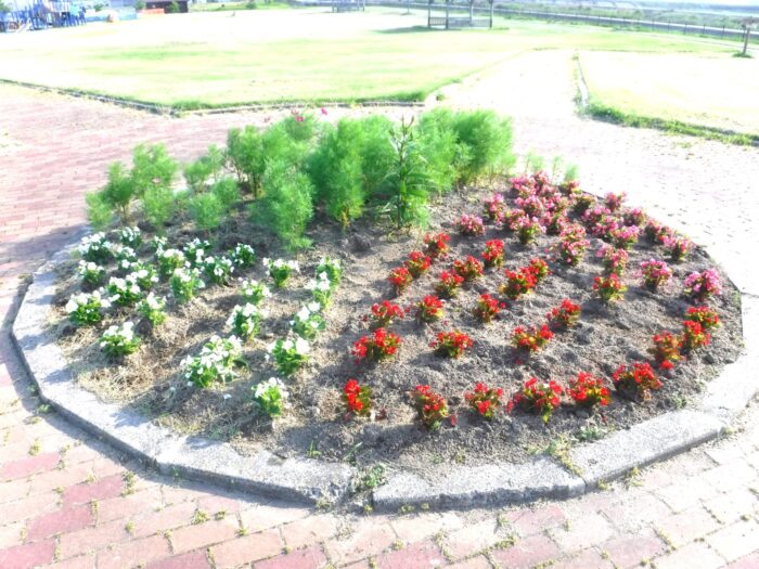 南ブロック、北ブロックの花壇にマリーゴールド、ベコニアを植栽しました。