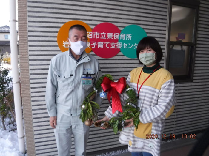 今年は職員が製作したクリスマスリースを【岩沼市立東保育所】様に進呈させて頂きました。
