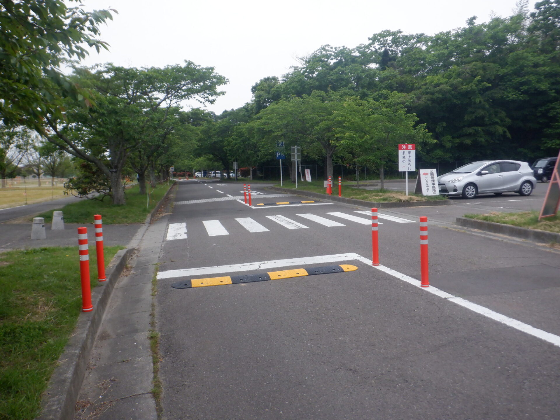 この度、園内幹線道路の横断歩道の前に