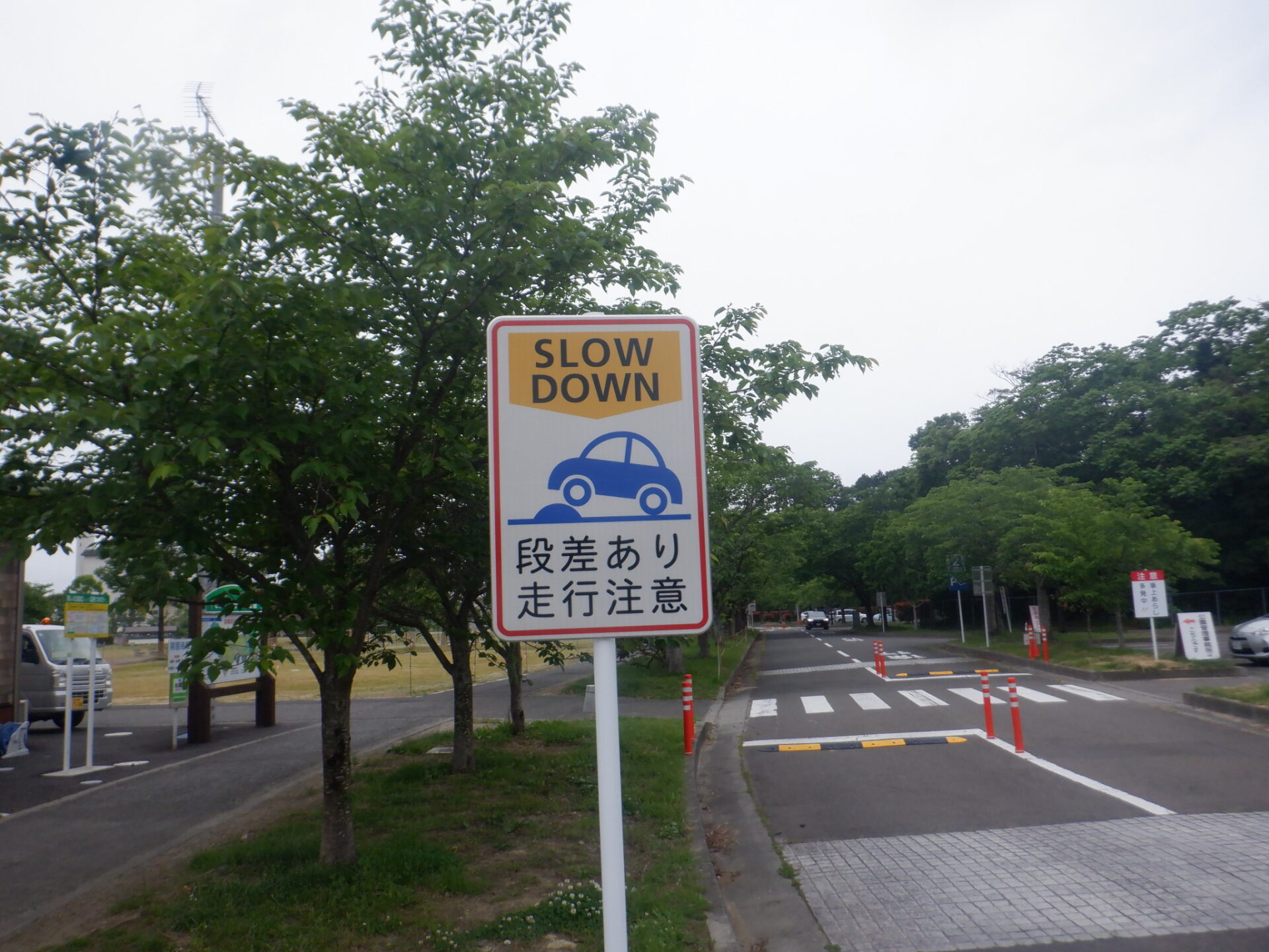 減速道路ハンプ・ポールコーン・注意看板