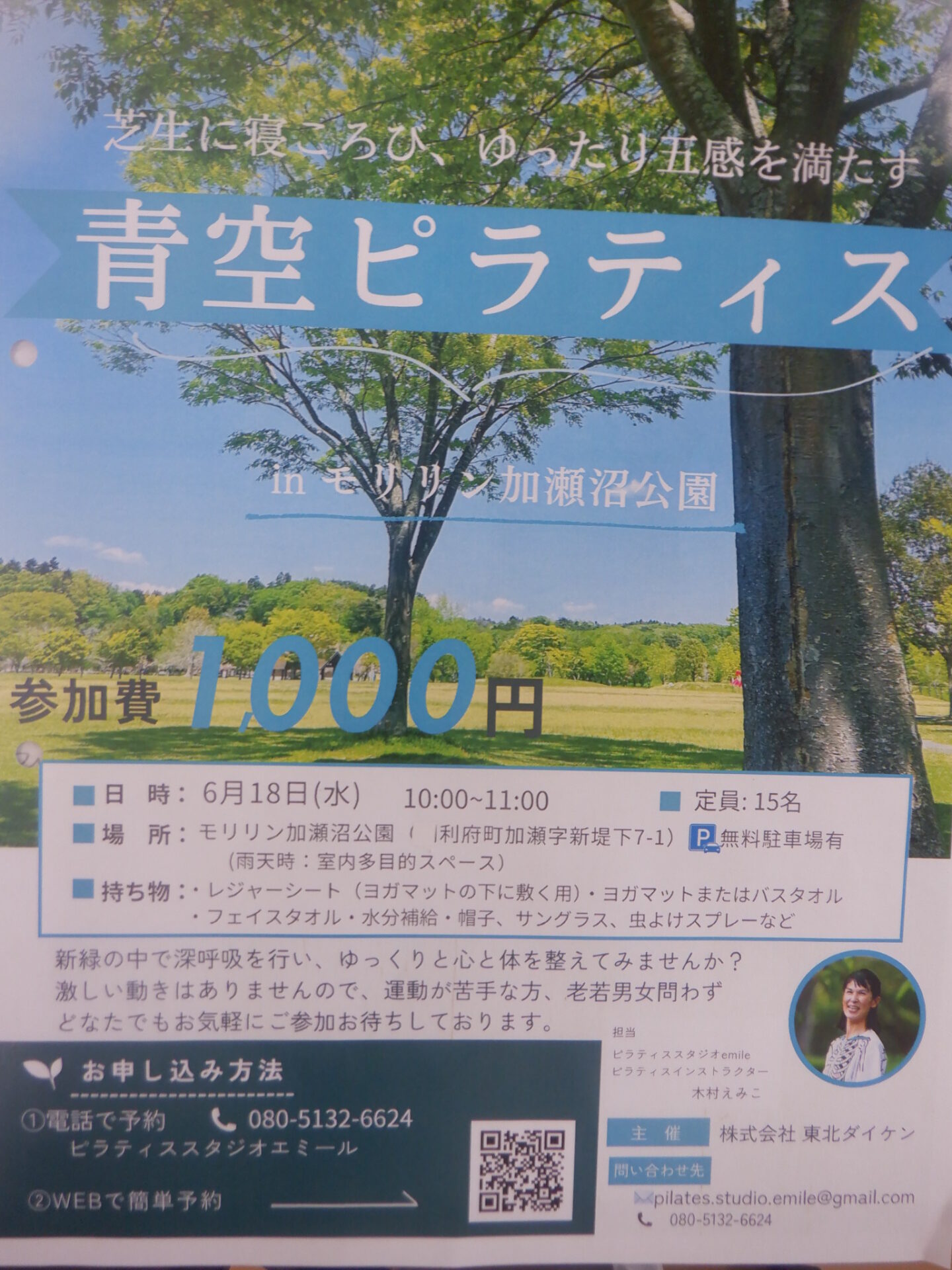 モリリン加瀬沼公園にて青空ヨガ教室を開催いたします。