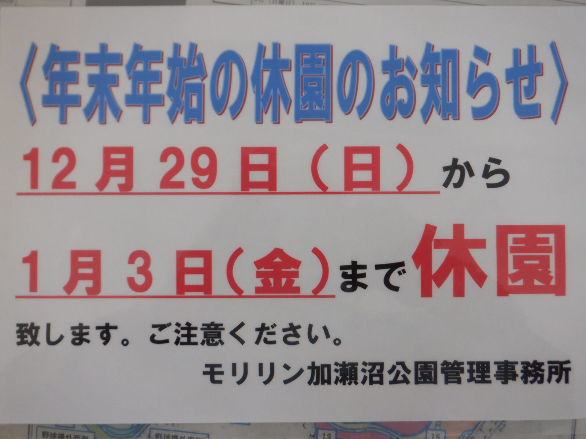 2024年12月29日から2025年1月3日まで休園