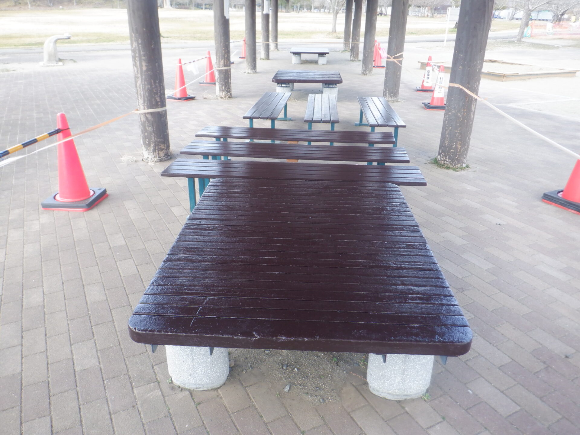 園内の東屋・テーブル・ベンチ等のペンキ塗り替えをして頂きました。