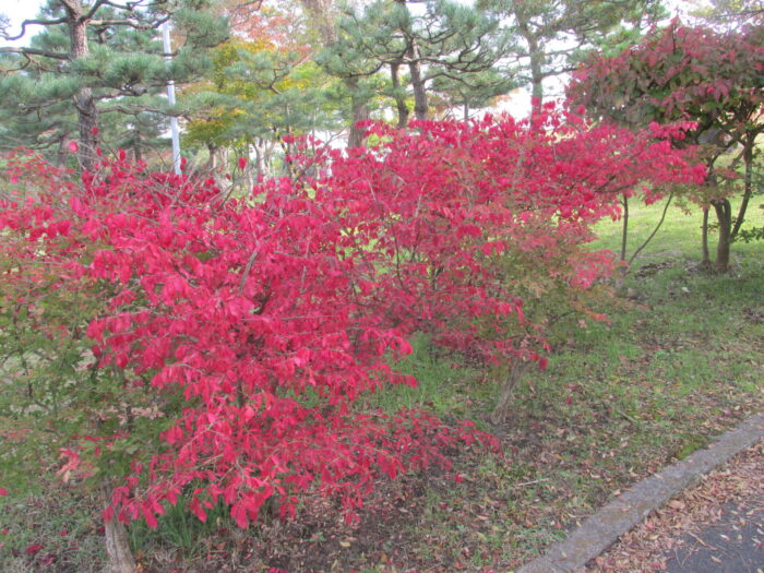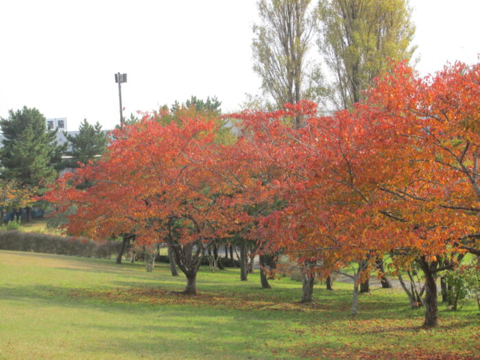 園内の木々が色づき落葉しはじめました。