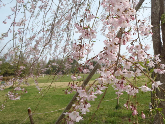 シンボルツリーの枝垂れ桜が咲きました。