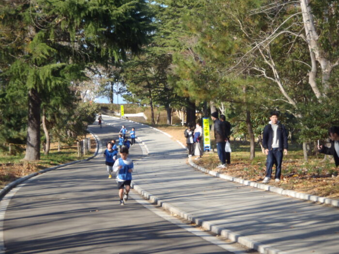 青空のもと東地区全域でさざんかミニマラソンが行われました。
