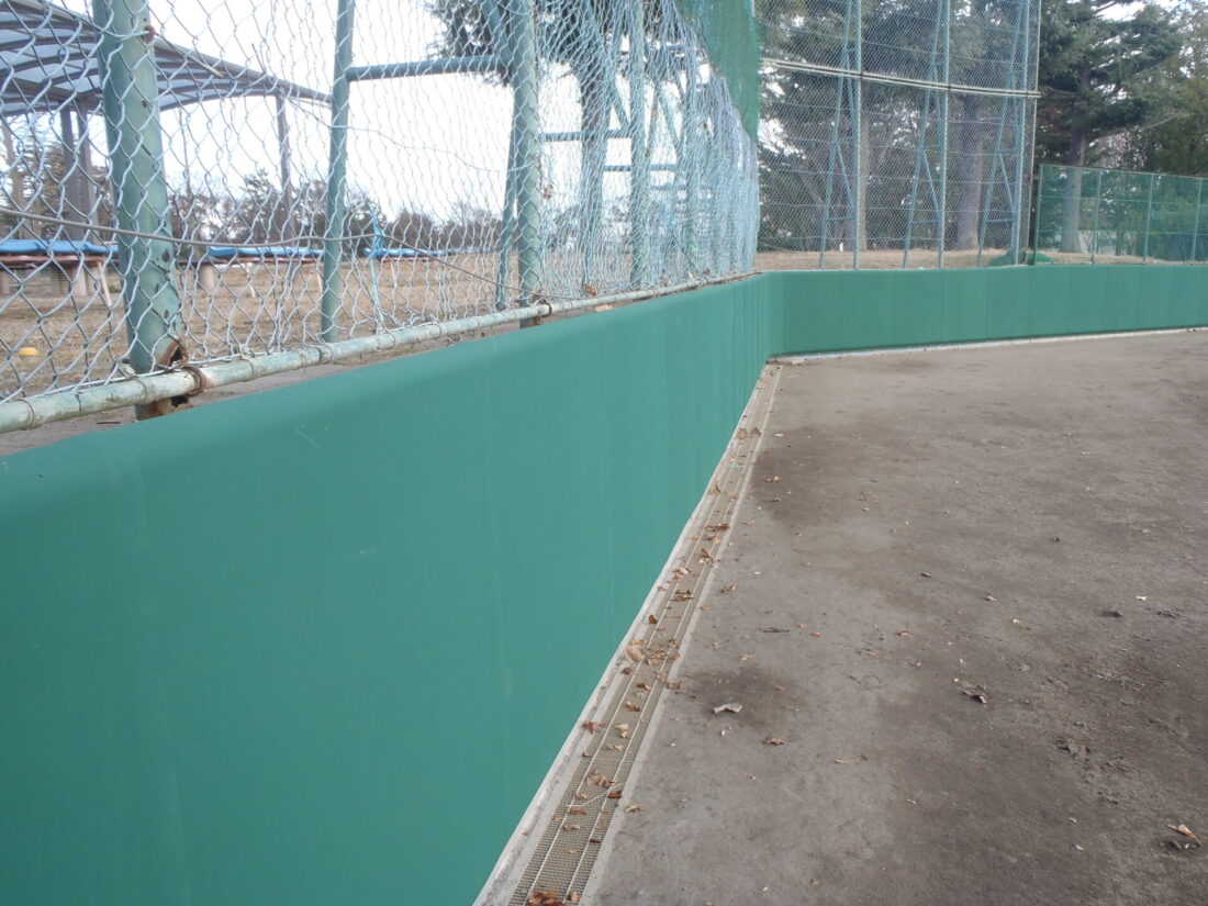 野球場のラバーフェンス(防護マット)が新しくなりました。