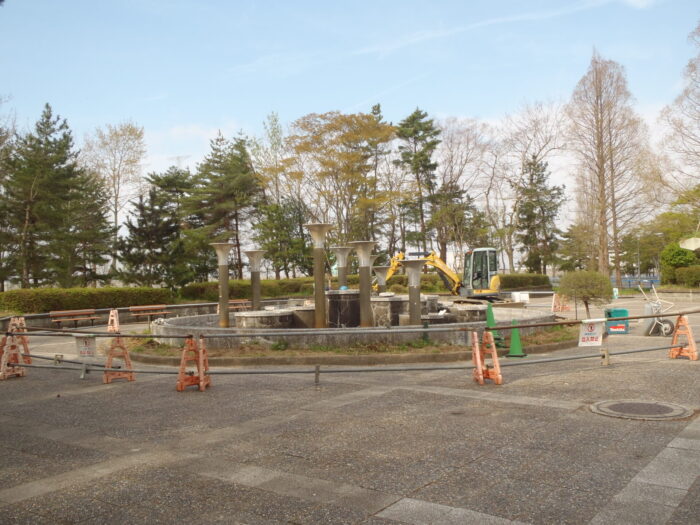 管理事務所前の噴水場の解体撤去工事が始まりました。