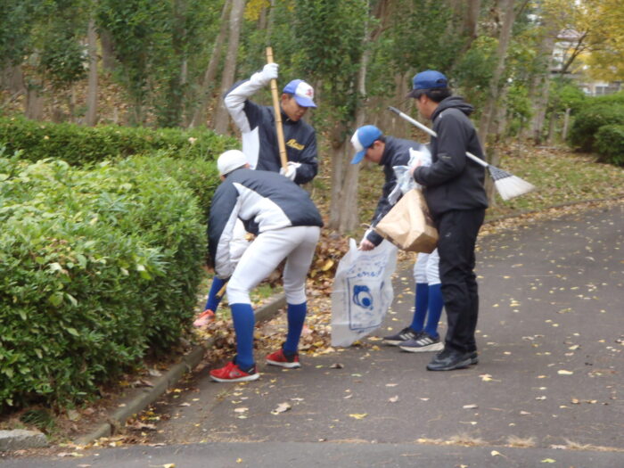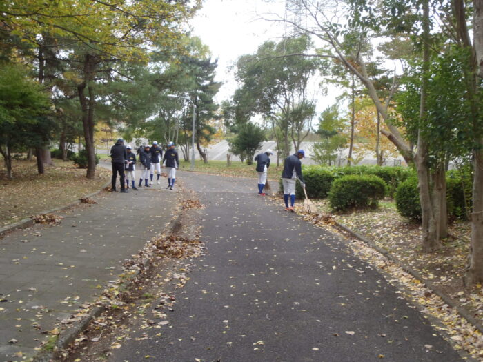 ふれあいサポーターの仙塩東リトルシニア様が落葉拾い活動を行っていただきました。