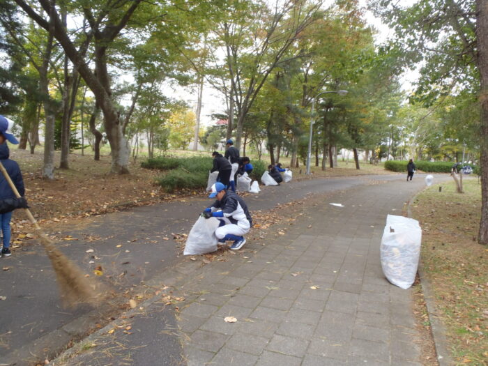 12月2日、ふれあいサポーターのみずむすびマネジメントみやぎ様が公園内のゴミ拾い活動をしていただきました。