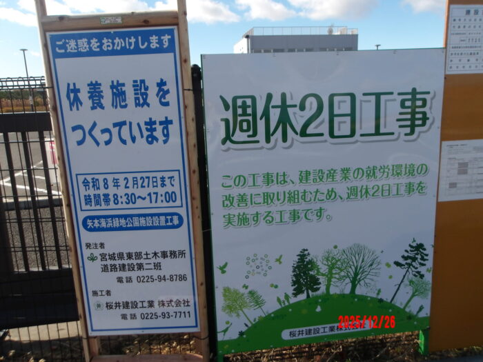 工事においては安全最優先で行ないますが、工事用作業機械の走行や資材