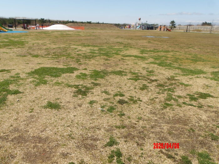 芝生広場の雑草除去を目的に再生工事を実施しました!