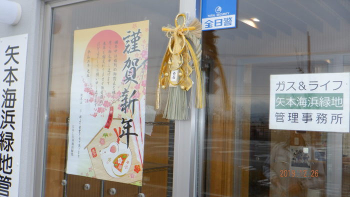 G&L矢本海浜緑地 事務所に正月飾りと新年のご挨拶を掲示させていただきました。