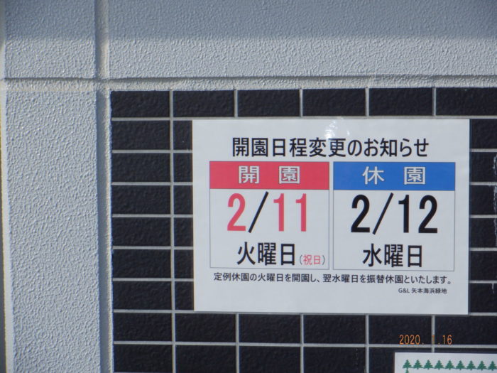 G&L矢本海浜緑地(公園側の)休園日のお知らせです。年末年始休園日(G&L)