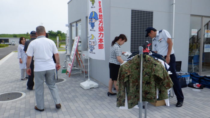 8月8日(木)矢本海浜緑地で自衛隊車両の展示とミニ制服の試着会が開催されました。