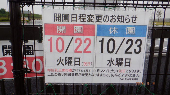 となります。公園事務所・正門等に表示いたしました。