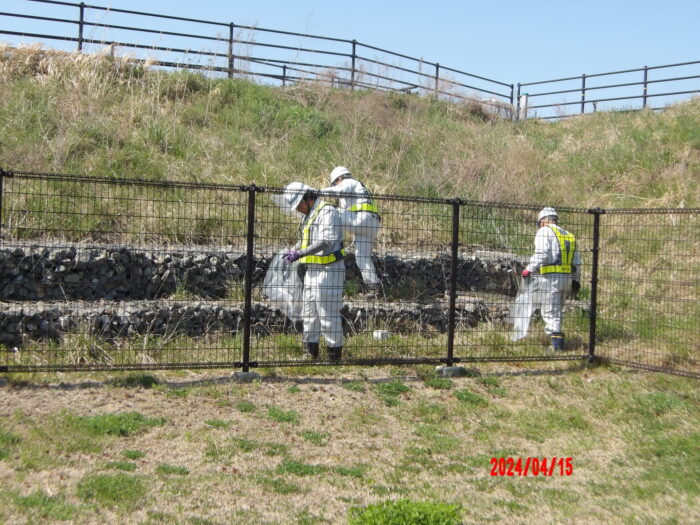 普段清掃の機会が少ない公園フェンスの外を中心に公園内外のゴミ拾いをしてくれました。