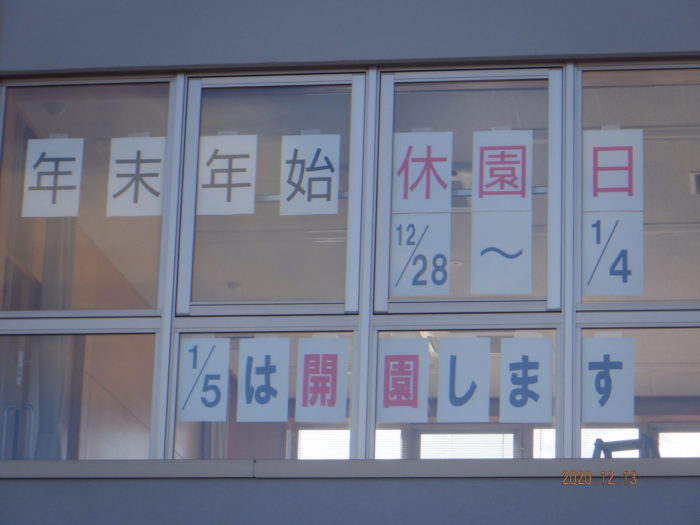 年末・年始の休園日案内